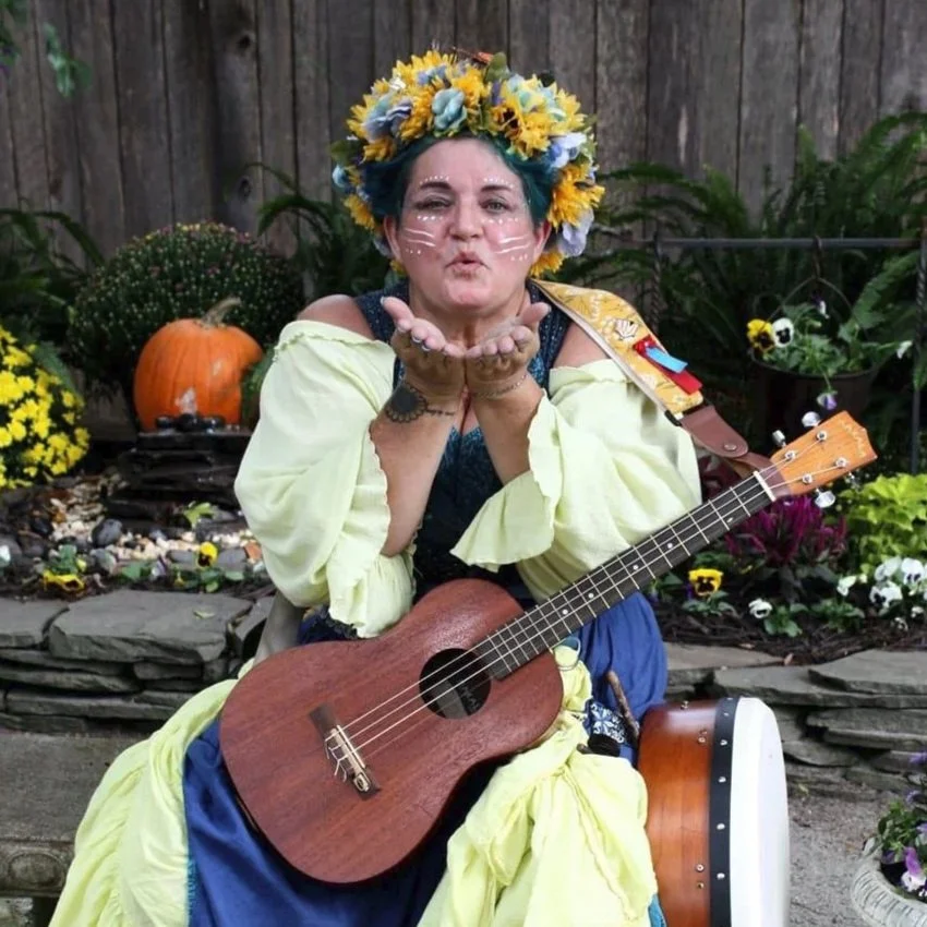 Lady Prudence, the Court Composer, sings Songs for All Occasions! Prepare to join the band with percussion for a peppy tune, or relax to a dulcet lullaby with lilting harp and sweet soprano. Patrons of all ages may meet her under her tree near the Green Man for a sweet (or saucy) song!